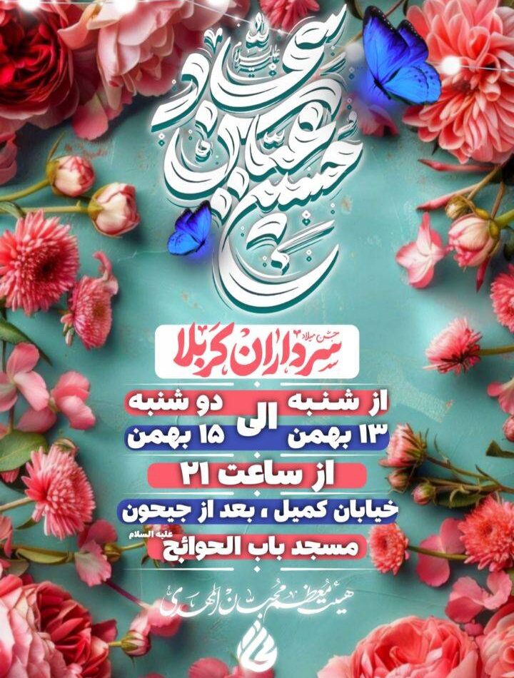 #اطلاعیه ✨ حـــلال جمیع مشکلات است حسین🍃 شـــویندۀ لوح سیئات است حسین 🌪 ای شیعه تو را چه غم ز طوفان بلا🛳 جائی که سفینة النجاة است حسین 🇮🇷 *ایران حسین (ع) تا ابد پیروز است …* ———————-🖤———————- 🏴 *مراسم عزاداریدهه اول محرم‌الحرام ۱۴۴۷* 🕰 زمان : *از پنجشنبه ۵…